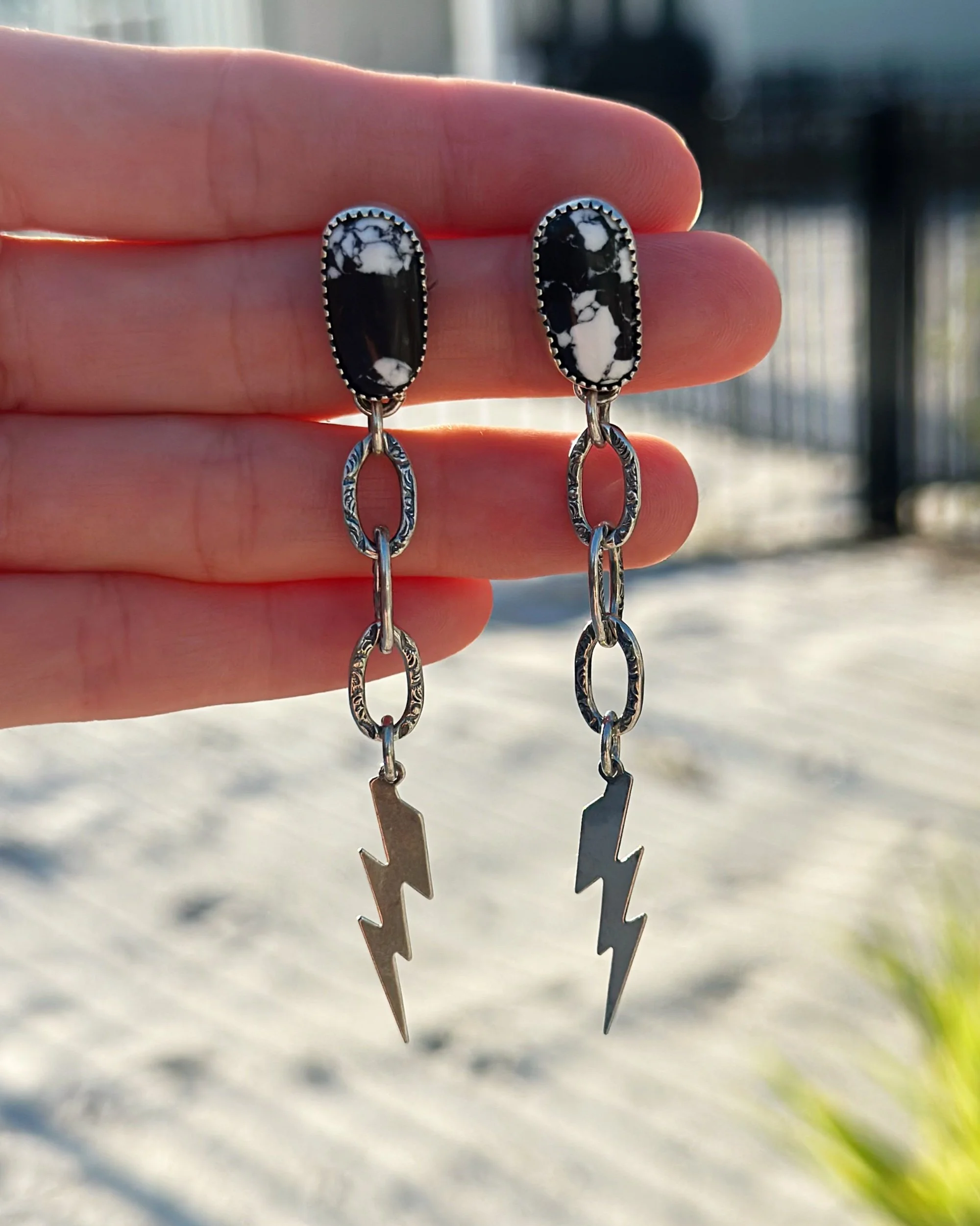 Categories: All Rings Necklace Bracelets Earrings Clothing All / Earrings Quick View White Buffalo Bolt Earrings $185.00 Quick View Turquoise Dagger Earrings $185.00 Quick View Turquoise Pyrite Hoop Earrings $275.00 Quick View Onyx Hoop Earrings $250.00 Sold out Quick View White Buffalo Dagger Earrings $170.00 Quick View Turquoise Pyrite Hoop Earrings $275.00 Sold out